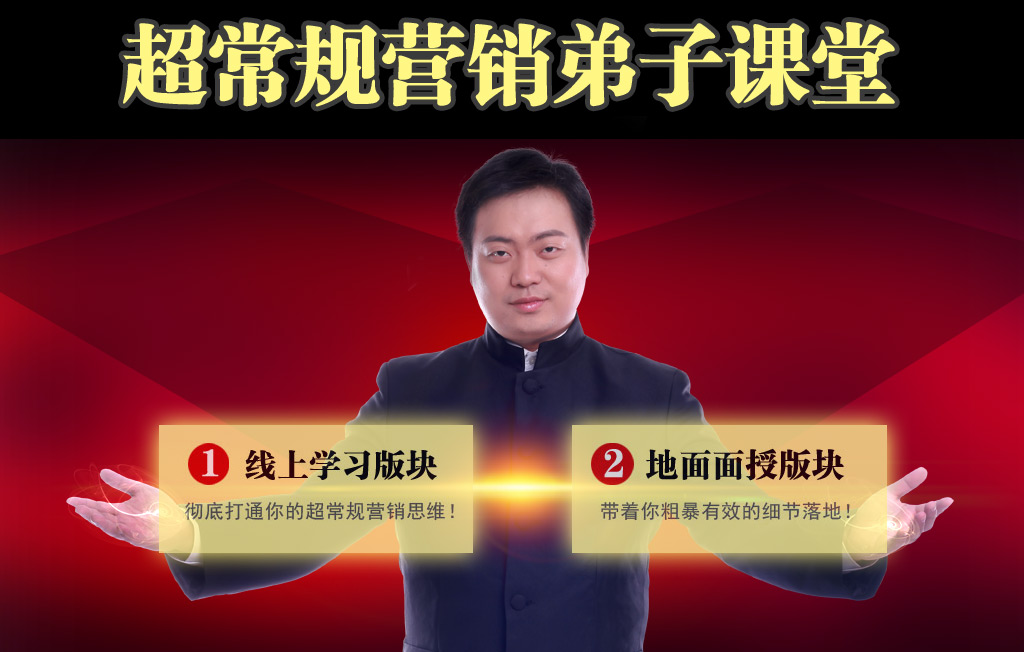 1 课程简介 超常规营销是由大道至简集团董事长李才文老师开创,它是一套颠覆传统思维的营销实践体系。 并以超常规营销体系为基础,运用一套独特的创业模式进行裂变,现旗下开设有营销策划公司、应用型系统开发公司、地面项目运营公司、商贸公司、资讯产品开发公司、餐饮培训策划公司、微销售培训策划公司、网络课程推广公司。 |